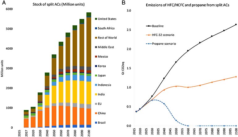 According to the report, a switch to propane in split ACs could avoid 0.09°C (0.06°C to 0.12°C) increase in global temperature by the end of the century. This is significantly more than the 0.03°C (0.02°C to 0.05°C) avoided warming from a complete switch to R32 in split ACs.