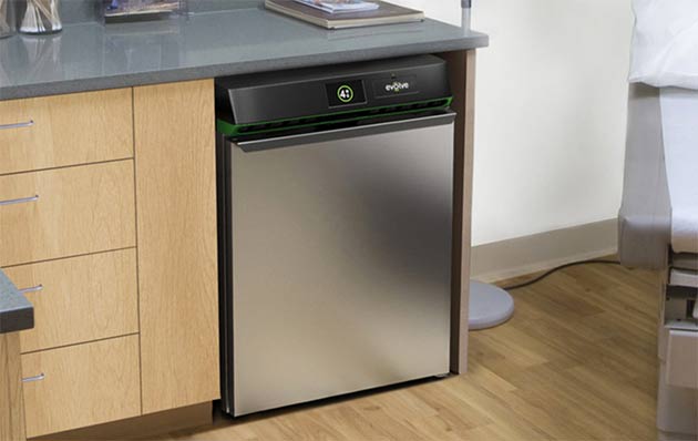 Designed to provide cold storage for sensitive medical and scientific products, Evolve’s solid-state refrigeration system absorbs heat energy from the storage cabinet using a non-toxic, non-hazardous refrigerant embedded in the walls.