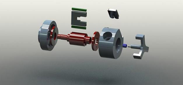 The spool compressor resembles a rotary vane compressor, but is described as being smaller, lighter and cheaper to manufacture than current technology. It has four main components: rotor, main housing, vane, and bearing housing.