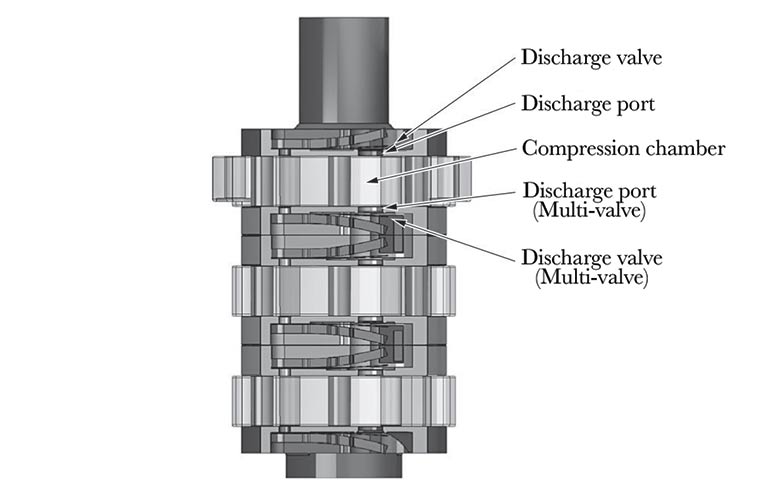 This large triple rotary compressor has been incorporated in the soon-to-be launched SMMSu line-up to achieve a far more compact design. The largest 20hp unit in the series measures just 1290mm x 780mm – a 40% reduction in footprint compared to existing units, which would require two units for the same duty.